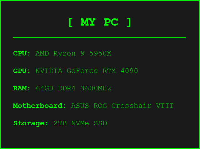 - Streamers: Use this Twitch info panel creator to display gaming setup specifications on your channel